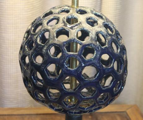 The glaze is a deep blue with cloud like swirls to suggest a blue planet. This original master prototype is offered at $399.00 and has inspired many subsequent works. Hex geoid "Hex Geoid Sculpture" is available on the Art/Clay Sculpture page