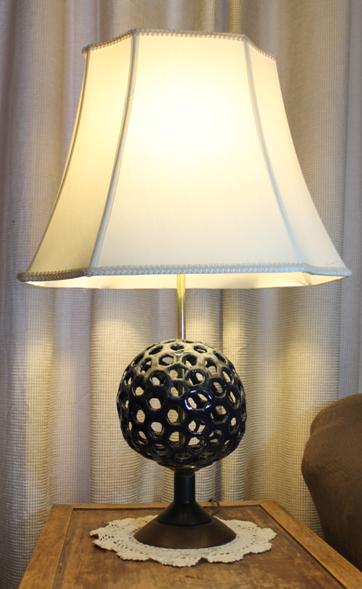 Above Left: Hex Geoid Lamp with Dragonfly Finial. Above Right: Hex Column with Bee Finial.